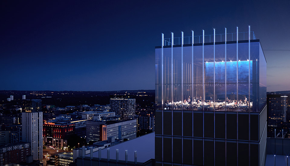 Design-wise, being close to 100 Temple Street, home to Bristol City Council, was a key thought for the design, where there is a low spandrel that wraps around the building, creating the balustrade to the cantilevered south-facing terraces at each level and shading the storey below.