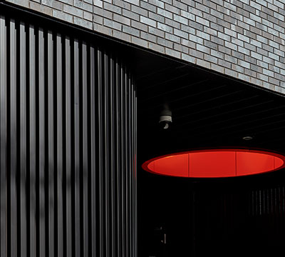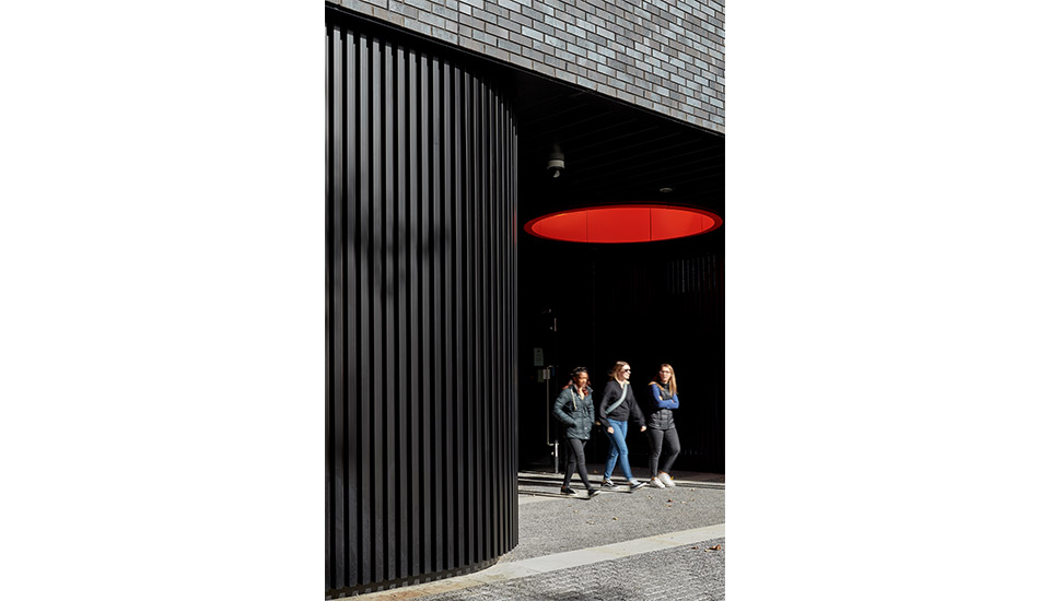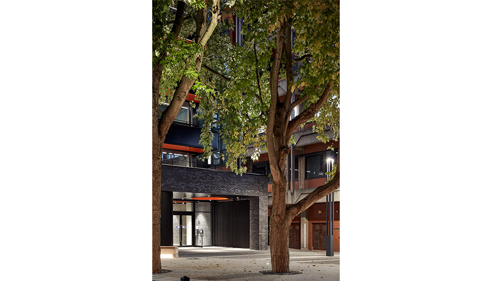 A harmonising palette of materials was chosen for the façade modelling itself on the neighbouring orange-red brick and pre-cast concrete buildings.