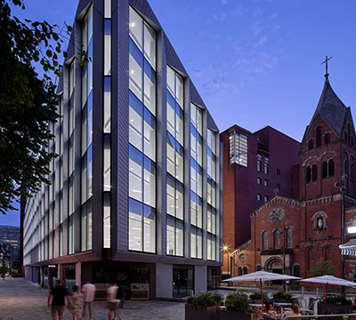 And to do that, it created 400,000sq ft of office space for 5,000 colleagues in a campus setting of three new buildings and two Grade B listed renovations. Set within three acres of re-greened public realm, this is the banking giant’s northern European headquarters.